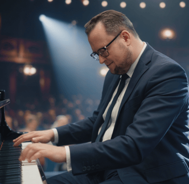 Renowned for his captivating stage presence and interaction with audiences, Kaplan turns every live performance into a shared musical journey. Interpreting a classical sonata or reimagining a beloved film theme, his concerts blend artistry and emotion, offering experiences that are both moving and engaging.